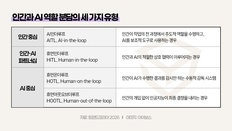 AI가 업무를 처리하는 과정에서 적어도 한 번은 인간이 관여해야 한다는 개념이 바로 휴먼인더루프예요. 여기서 루프는 특정 업무의 처음부터 끝까지 이어지는 순환고리를 의미해요. 결국 이 과정에서 인간이 개입해서 시스템의 정확성을 높이고, 최종적으로 결정을 내릴 때 윤리적 판단, 창조적 감성을 부여해서 완성해야 한다는 업무 설계 철학인 셈이에요. |