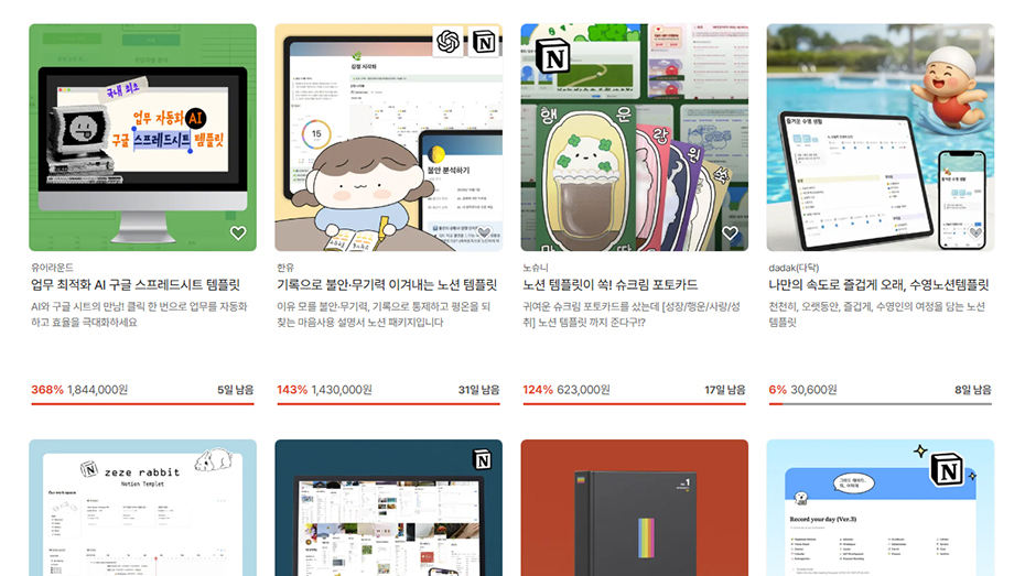 텀블벅에서 거래되고 있는 다양한 템플릿들 (사진: 텀블벅) |