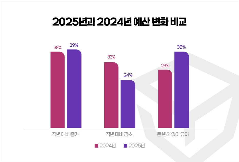 ๋๋น ์ฆ๊ฐํ๋ค๋ ์๋ต์ด 39%๋ก ๊ฐ์ฅ ๋์์ผ๋ฉฐ, ํฐ ๋ณํ ์์ด ์ ์งํ๋ค๋ ์๋ต์ ํฌํจํ๋ฉด 77%์ ์๋ต์๊ฐ ๋ง์ผํ